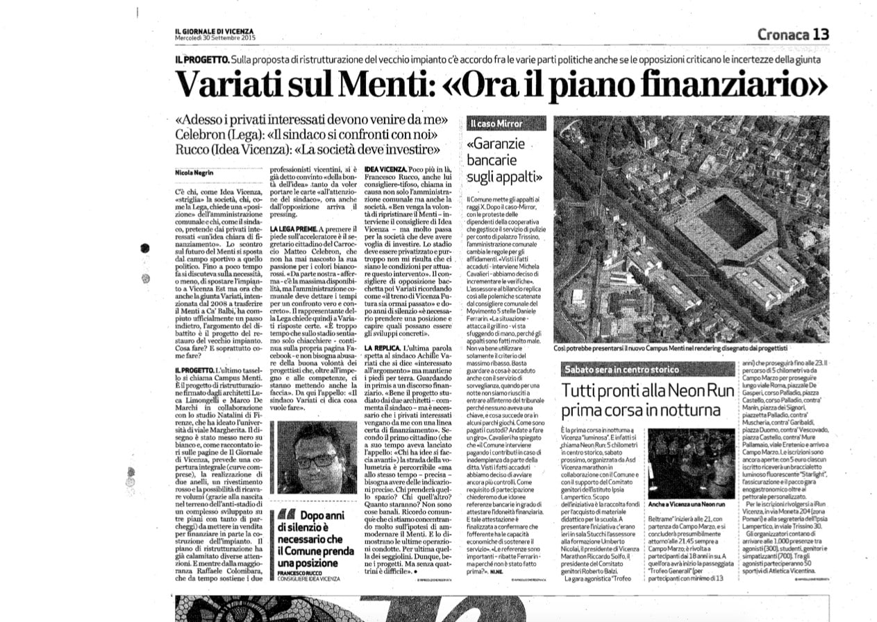Uno stadio all'inglese visto come campus universitario integrato con la vicina sede della Fondazione Studi Universitari di Vicenza.